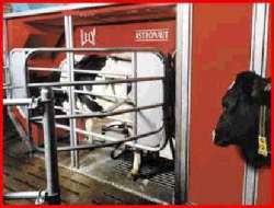 Le robot de traite ou système volontaire de traite a une capacité de 50 à 70 vaches et travaille 24 heures par jour. La vache décide d’elle-même pour aller se faire traire. Une multitude de fonction peuve être programmée au robot. Par exemple, des analyses instantannées du lait aident l’éleveur dans sa détection des mammites ou des chaleurs. L’ordinateur du robot archive des statistiques précises sur la production de chaque vache. Nous avons visité 4 des 7 robots installés dans l’Ouest de l’Ontario. Dans le monde, il y aurait environ 500 à 1000 robots en fonction.