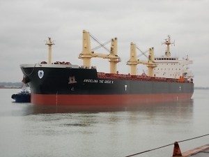 Une des plus grandes cargaisons d’engrais à jamais pénétrer dans le fleuve Saint-Laurent est arrivée à bon port jeudi, quand le M.V. Angelina The Great a accosté à Contrecoeur.
