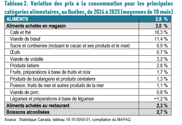 L’inflation auprès des aliments a fait jaser en 2025, surtout au Québec où elle a été une des plus fortes parmi les provinces canadiennes.