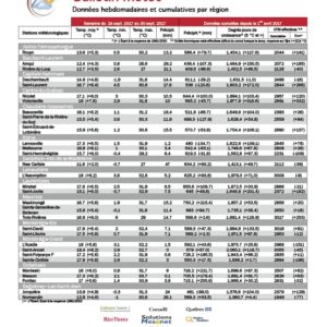 Consultez en ligne notre nouveau bulletin météo. Il résume par région les écarts de températures et les quantités de précipitations pour chaque semaine. Le bulletin météo vous informe sur le cumul des degrés-jours et des unités thermiques pour le maïs. En plus, vous pouvez comparer l’accumulation des jours de croissance par rapport à la moyenne des dernières années. Une information très utile pour gérer vos cultures.