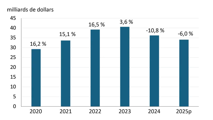 À ce chapitre, l’organisme souligne que les recettes agricoles de 2025 pourraient suivre la tendance à la baisse de 2024. Elles avaient diminué de 1,6 % l’an dernier, étant tirées vers le bas par la baisse des revenus provenant des céréales et des oléagineux, et ce, malgré de bons rendements du côté de l’élevage.