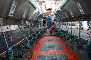 Dans le nouveau bâtiment, les vaches sont traites à l’aide d’une salle de traite double 10 Westfalia/Surge. Un système informatique comptabilise une série de données sur chacune des vaches : le temps de traite, le débit de traite, la quantité totale de lait, etc. Les données provenant d’un distributeur automatique de concentré d’appoint y sont aussi consignées. Les bracelets aux chevilles des vaches permettent également de donner une indication sur les chaleurs. D’ailleurs à la sortie du salon de traite, selon les données recueillies, la vache peut être redirigée vers un parc où elle recevra des soins particuliers.