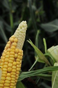 Un épi sans grain à son extrémité peut être aussi un signe que vos plants de maïs ont souffert de la sécheresse. Les épis d’un plant de maïs sont fertilisés du bas vers le haut. Si la sécheresse est à son plus fort à la fin de la pollinisation, les grains du bout de l’épi ne seront pas pollinisés.