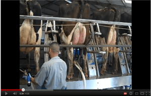 Sur cette vidéo –cliquer ici-, on peut voir les installations de la ferme Fern Oak Day située à Porterville en Californie. La ferme compte plus de 3000 vaches laitières. La traite s’étend sur six heures à raison d’environ 450 vaches à l’heure.