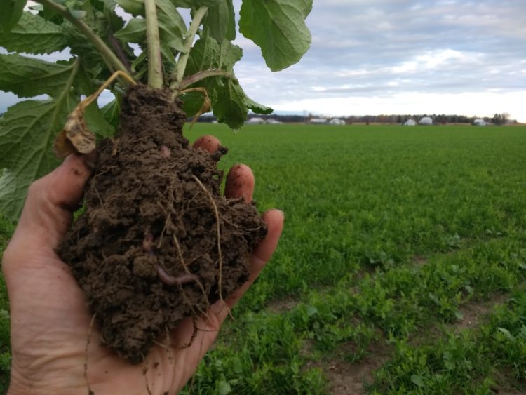 Après avoir analysé et discuté de plusieurs pistes de solutions, le service d’accompagnement s’est éteint faute de budget. Mais le raisonnement, le thinking, est resté ancré dans nos têtes comme si on nous l’avait tatoué. Chaque fois qu’on planifiait de nouvelles orientations on prenait régulièrement en considération les avantages et les inconvénients environnementaux. Rien de parfait, mais une orientation qui nous a guidés en permanence au cours des dernières années. On a donc continué la réduction du travail du sol, amélioré les caractéristiques agronomiques de celui-ci, pratiqué des rotations stratégiques qui nous on conduit dans un système complexe des cultures. On s’est affairé à couvrir nos sols le plus longtemps possible et ainsi rendre disponible de la nourriture à nos vers de terre et autres organismes dans notre sol. On a choisi de nouvelles cultures plus courtes et moins énergivores. Luttes intégrée, amélioration de notre dépistage au champ, suivi d’interventions phytosanitaires chirurgicales nous ont permis d’être plus efficace.