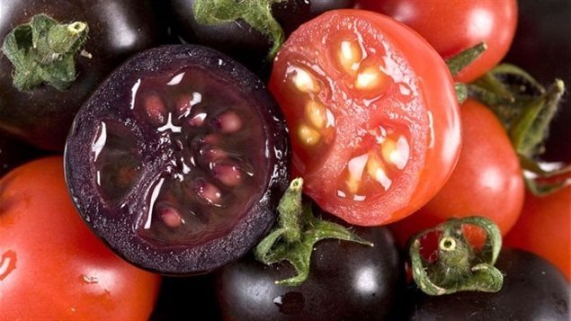 Les chercheurs du centre John Innes en, Grande Bretagne, cultivent actuellement sous serre une tomate génétiquement modifiée qui présente une couleur pourpre.