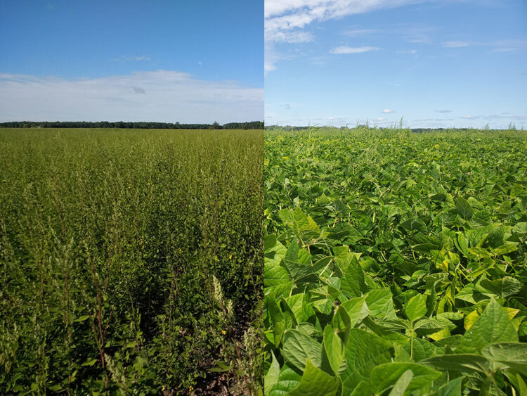 Vendredi dernier j’ai publié sur les médias sociaux cette courte citation accompagnée de deux illustrations : « Un champ de haricots secs en culture bio au côté d’un champ de haricots secs en culture conventionnelle. Je m’interroge… Réflexion. »