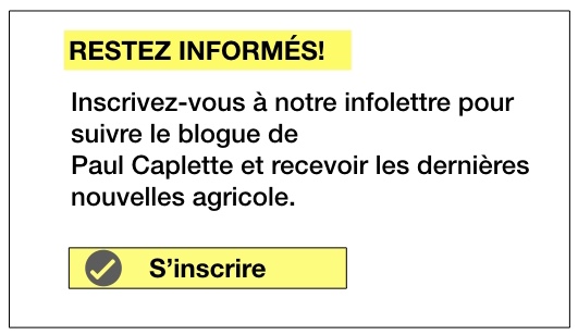 C’est un raisonnement caricatural, mais on s’entend qu’on a tous du travail à faire! Justement, on y travaille et les résultats seront surprenants. Le risque zéro n’existe pas et je dois mieux gérer ces risques avec un sol en santé, un meilleur dépistage, des rotations stratégiques, des équipements modifiés… Probablement que de nouveaux équipements pourront nous permettre d’utiliser encore moins de pesticides. C’est notre objectif. Demain, je participe à une journée sur l’agriculture biologique parce qu’il y a sûrement des choses que je peux retenir de leurs techniques et les transposer sur notre ferme. Alors, pour ceux qui ne sont pas agriculteurs et qui liront ce texte, S.V.P. encouragez-nous et soyez assuré qu’on fait de notre mieux pour vous nourrir sainement. Question de fierté : Profession Agriculteur!