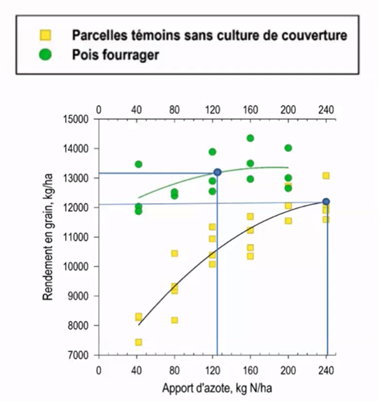 Les cultures de couverture ont prouvé leur efficacité puisqu’il a été démontré que l’activité biologique est concentrée autour des racines. Dans un essai fait au champ, des intercalaires de trèfle et d’orge ont amélioré l’infiltration d’eau dans un sol argileux. Dans un autre cas, l’efficacité de la moutarde et du pois fourrager comme engrais vert a été comparé dans la culture d’un champ de maïs. L’utilisation de l’azote a été nettement moins nécessaire pour arriver à des rendements supérieurs qu’en utilisant une dose de 240 kg par hectare d’azote durant toute la saison. Un sol avec une moins bonne structure de sol répondra d’ailleurs mieux à l’ajout d’azote, tout en étant moins économique.