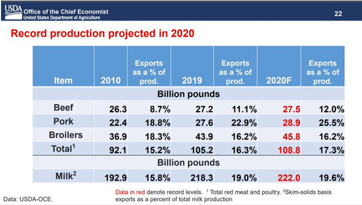 Le département américain de l’Agriculture (USDA) a livré ses projections pour 2020 lors de son assemblée annuelle, à la fois pour le secteur des grandes cultures que de la production animale.