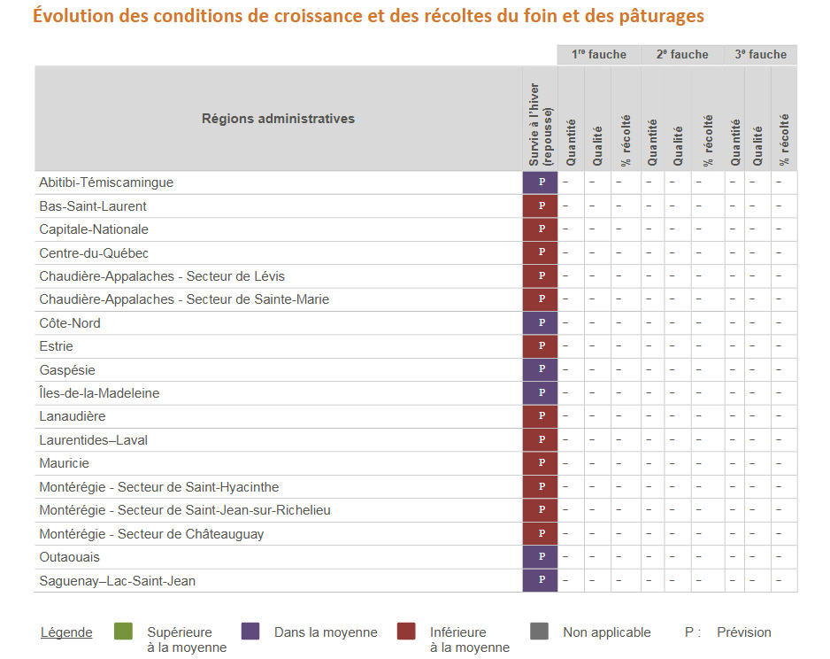 Huguette Martel, conseillère en plantes fourragères au MAPAQ, recommande toutefois de contacter tout de même la Financière en cas de pertes ou dommages liés au gel. « Cela permet de dresser un portrait de la situation et de mieux évaluer l’étendue des dégâts. On peut ainsi mieux réagir aux défis liés à la culture fourragère. »