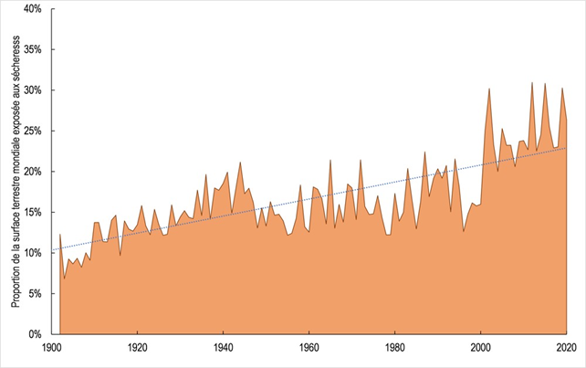 Part de la surface terrestre mondiale touchée par la sécheresse. (OCDE, 2025)