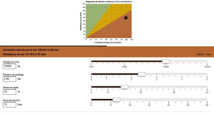 Baptisé Terranimo, ce modèle a été développé par une équipe de scientifiques suisses et danois (disponible ici : www.terranimo.world). Il est offert en deux versions : une version expert pour une analyse exhaustive du risque de compaction dans des conditions précises et une version dite light pour une évaluation simple et rapide, mais approximative, du risque de compaction.