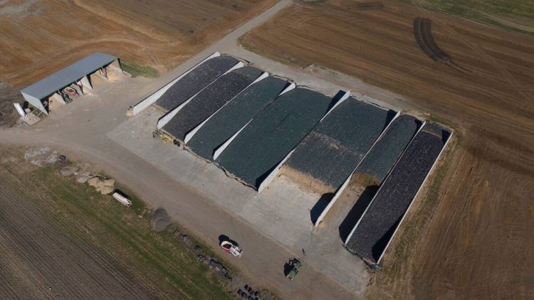 Maintenant, le fonctionnement est clairement établi. Le site d’entreposage des aliments a sept silos couloirs: trois pour l’ensilage de luzerne, trois pour l’ensilage de maïs et un pour l’ensilage de foin des génisses. Il y a aussi cinq cases couvertes pour les autres ingrédients ainsi que deux silos pour les minéraux.