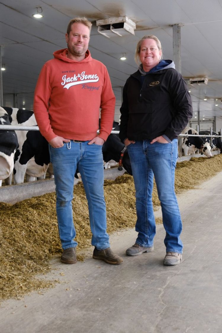 Pour optimiser les cultures et l’entreposage des récoltes, les cinq propriétaires des trois fermes dorénavant voisines ont opté pour un seul site. «On le savait qu’on s’en allait en bunkers [silos-couloirs], raconte Ysabel. On a tout simplement embarqué les autres dans le projet.» Il est décidé que la Ferme Léo Jacobs cultivera toutes les terres des trois entités voisines et fera l’entreposage et la vente des aliments pour les animaux aux deux autres fermes. C’est alors que Laurie et Mathieu ont levé la main. Ils ont demandé s’ils pouvaient se joindre au groupe. En décembre 2020, la nouvelle étable de la ferme entrait en fonction, une étable avec six robots de traite et le site d’entreposage et de fabrication d’alimentation voyait le jour.