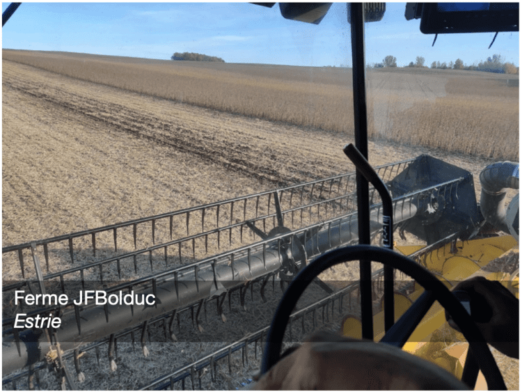 « Nous devrions terminer demain. On va obtenir une moyenne de 3,2t/ha sur 250 ha. Nous sommes quand même contents compte tenu de l’année difficile dans le soya. Pas d’insecticide appliqué sur nos champs et une bonne proportion de ceux-ci sont sur le sable. »