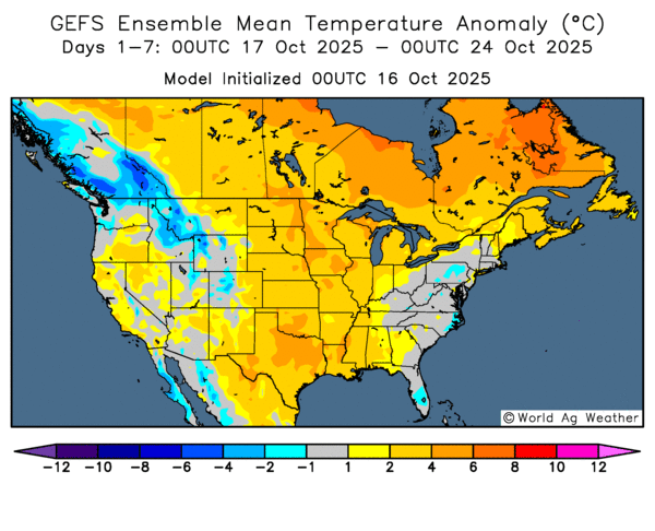 Dans le maïs, ça débute lentement avec 7 % des superficies qui sont récoltées, en retard d’environ 15 % sur la moyenne des cinq dernières années. Comme prévu, les gels de la fin de la semaine dernière ont stoppé la maturité du maïs, qui profitait encore jusque-là des journées exceptionnellement chaudes pour progresser dans certaines régions. On attend maintenant la baisse du taux d’humidité pour entamer ce grand chantier.
