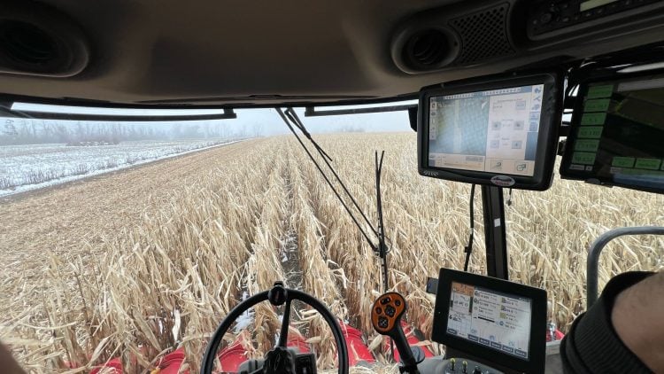 «Il a fallu attendre qu’il fasse assez froid avant de battre et il y avait encore de la neige sur les épis par endroits. Il reste encore un peu de maïs au champ parce que certains rangs avaient des accumulations de 3 à 4 pouces de neige.» partage Philippe Garneau, Ferme Louison enr., au Lac-Saint-Jean.