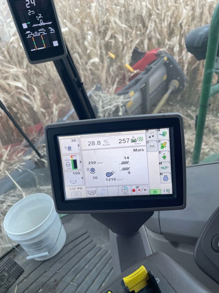 «Les récoltes ont recommencé mardi. Les rendements sont très variables d’un champ à l’autre selon les variétés et les dates de semis. L’humidité se situe autour de 24 à 25 et baisse très peu. Si tout va bien, on devrait terminer jeudi.» explique Dominique Dubuc, Ferme Dom Inc., en Montérégie-Ouest.
