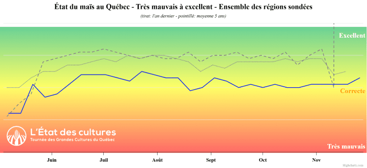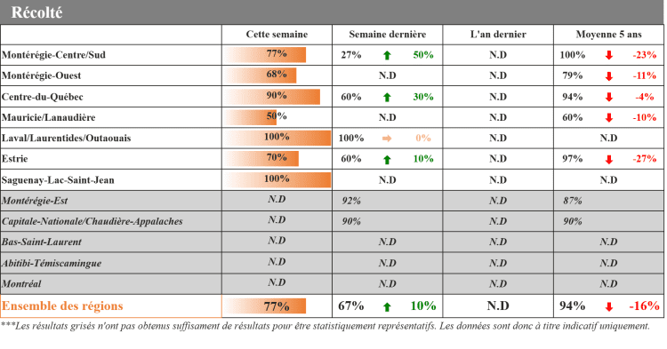 Dans ces conditions, les travaux avancent lentement, mais sûrement, avec environ 7 % de plus de maïs récolté au cours des sept derniers jours.