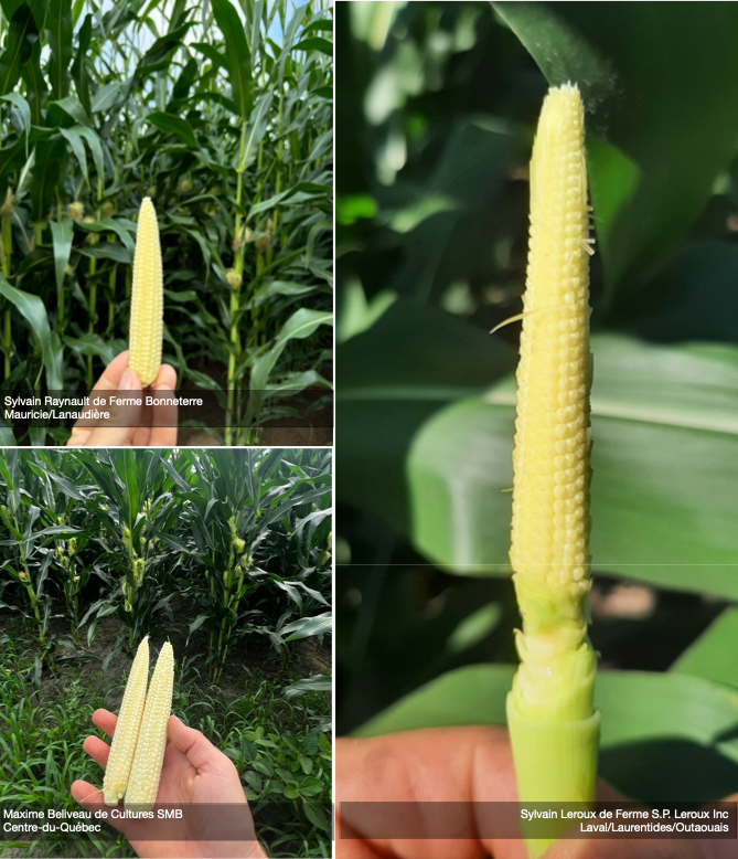« Épis de grosseur standard, mais deux par plant ont fleuri en même temps. Si les deux épis font des grains se sera une année exceptionnelle, si seulement un épi se fini, ce sera une année dans la moyenne. » Maxime Beliveau – Cultures SMB – Centre-du-Québec