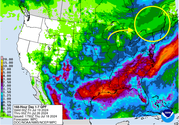 Un « break » de pluie enfin à l’horizon! Si on se fie aux dernières prévisions, il ne devrait pas y avoir beaucoup de précipitations dans la plupart des régions au cours des sept prochains jours. On parle d’un cumulatif sept jours de seulement 2,5 mm. Aussi bien dire qu’il n’y aura pas de pluie…