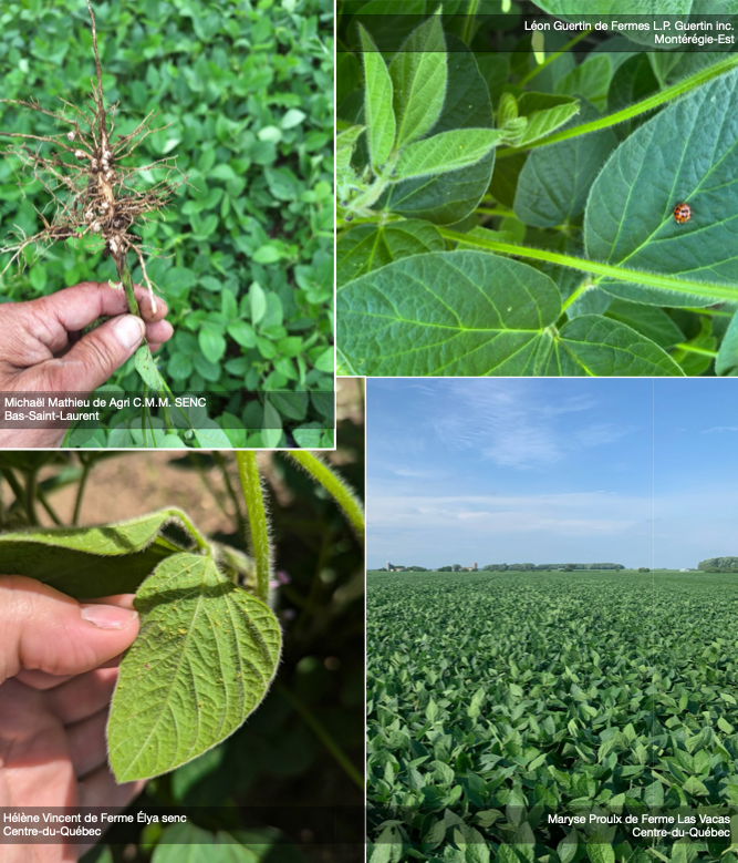 «Les champs de soya sont en bonne condition en général dans ma région, par contre plusieurs champs ont atteint ou devront atteindre des niveaux de comptage de pucerons qui vont nécessiter un traitement… vigilance et surveillance sont de mise!! »Guillaume Leblanc – Entreprises Agrinova inc – Montérégie-Est