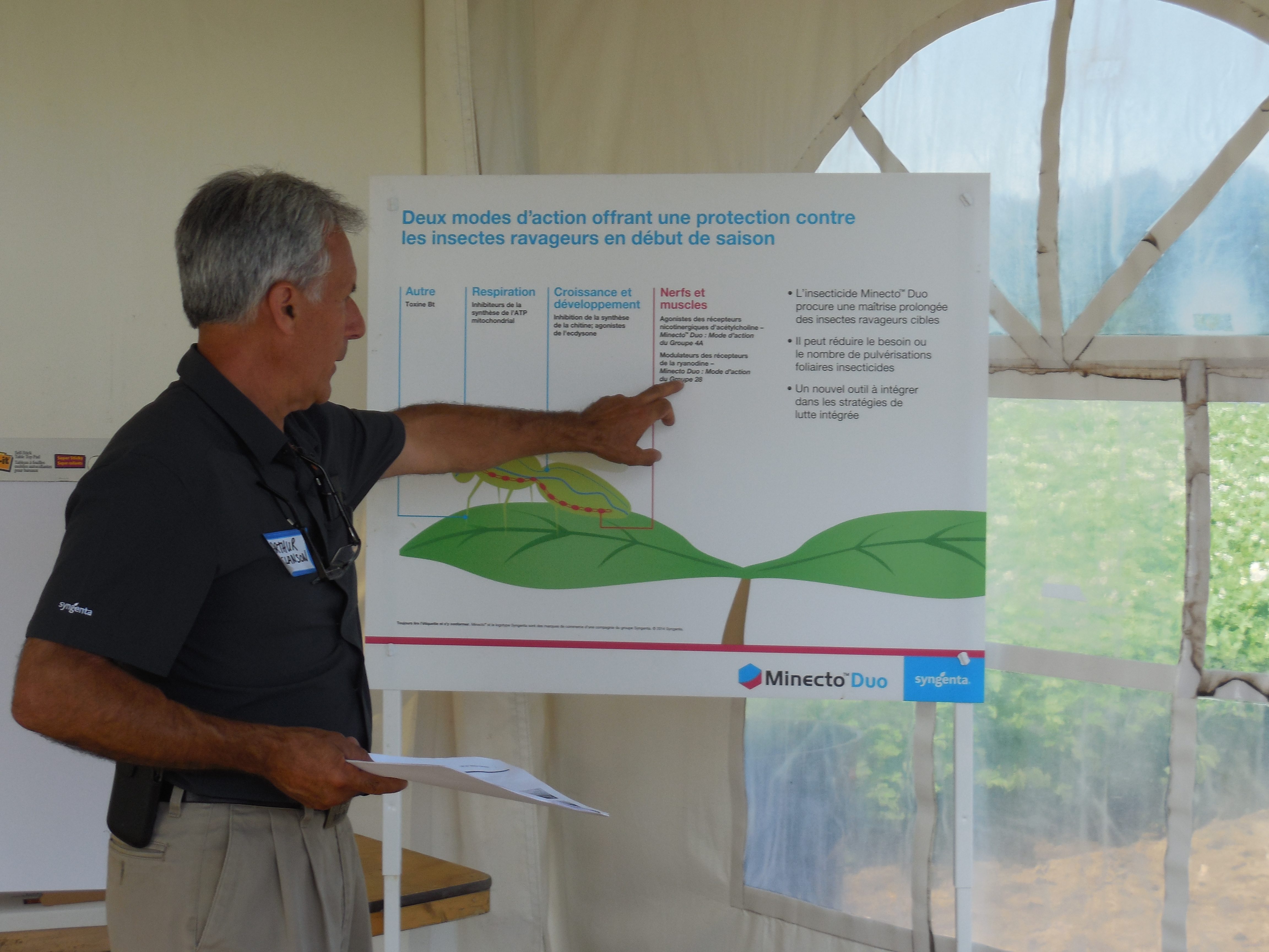 Christian Léger, directeur des ventes pour les Maritimes, Québec et l’est de l’Ontario pour Syngenta, était visiblement heureux de l’hétérogénéité et de la réponse des participants. « Une journée comme celle-ci donne l’opportunité aux intervenants d’interagir entre eux et d’apprendre l’existence de nouvelles technologies pour aider les producteurs à accroitre la rentabilité de leurs cultures. »