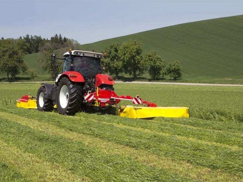Pöttinger propose ses modèles Eurocat 272 et 312. Il s’agit de faucheuses portées arrière à tambours avec bras d’attelage hydraulique.