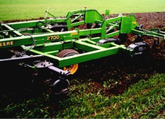 La nouvelle défonceuse à trois fonctions existe en largeurs de 12,5 pieds, 14 pieds, 17,5 pieds et 18 pieds. Les disques avant réduisent les résidus et les enterrent partiellement, les puissants étançons décompactent jusqu’à 16 pouces de profondeur, et les disques arrière nivellent le terrain. Les trois fonctions sont commandées indépendamment, ce qui permet de soulever les disques avant ou arrière ou les deux, au besoin. Les disques arrière travaillent en position flottante sur le sol; les disques avant reçoivent une pression leur permettant d’effectuer un travail plus puissant. Les étançons peuvent être écartés de 24 ou 30 pouces.