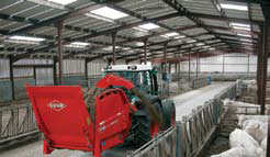 Octobre 2007 – La PRIMOR 2060 M fabriquée par Kuhn permet de pailler des aires de couchage profondes et de distribuer les produits longs, tels que le foin et l’herbe enrubannée, avec une seule et même machine.Celle-ci est également offerte en modèletraîné. Le chargement autonome des ballesrondes ou cubiques s’effectue grâceau hayon de chargement hydrauliquereposant au sol. Le paillage « en pluie »s’effectue jusqu’à 18 mètres. La nouvelleconception de turbine permet à l’uniquegoulotte de la PRIMOR 2060 M d’assurerdeux fonctions : le paillage et la distribution.L’orientation de la goulotte sur 300°,c’est-à-dire paillage à droite et à gauchedu tracteur, est offerte en option.