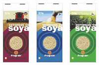 Février 2005 – Prograin commercialise trois gammes de soya dans des sacs de couleurs distinctes : rouge pour le Quali-Pro, bleu pour le IP et vert pour le Roundup Ready. Par ailleurs, une fenêtre permet au producteurde différencier facilement les troisgammes de soya.