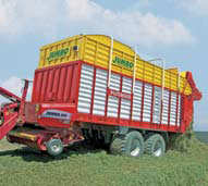 Pöttinger a aussi inaugurésa ligne JumboCombiLine, à la foisremorques ensileuseset remorques de transport.Le modèle 6600Lpeut contenir 37,3 m3d’ensilage. Pöttinger aremporté des prix pourson dispositif de coupeEasymove escamotableet facile d’accès pourl’entretien. Les 45 couteauxhachent la plusgrande partie du foinà 34 mm (valeur théorique),une longueurde brin idéale pour lesruminants.