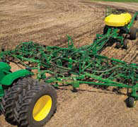 Septembre 2007 – Le semoir pneumatique 1870 de John Deere est muni de nouvelles pattes qui améliorent la précision de la profondeur, du taux de semis et de la fertilisation. Cesemoir est offert en largeur de 12 m sur trois sectionset de 17 m sur cinq sections. Les pattes sont disposéessur trois rangées. L’engrais peut être positionnéaussi loin que 10 cm de la semence. Cesemoir satisfait aux conditions de semis sanstravail du sol. Il est compatible avec les équipementsde semis de précision GreenStar 2.